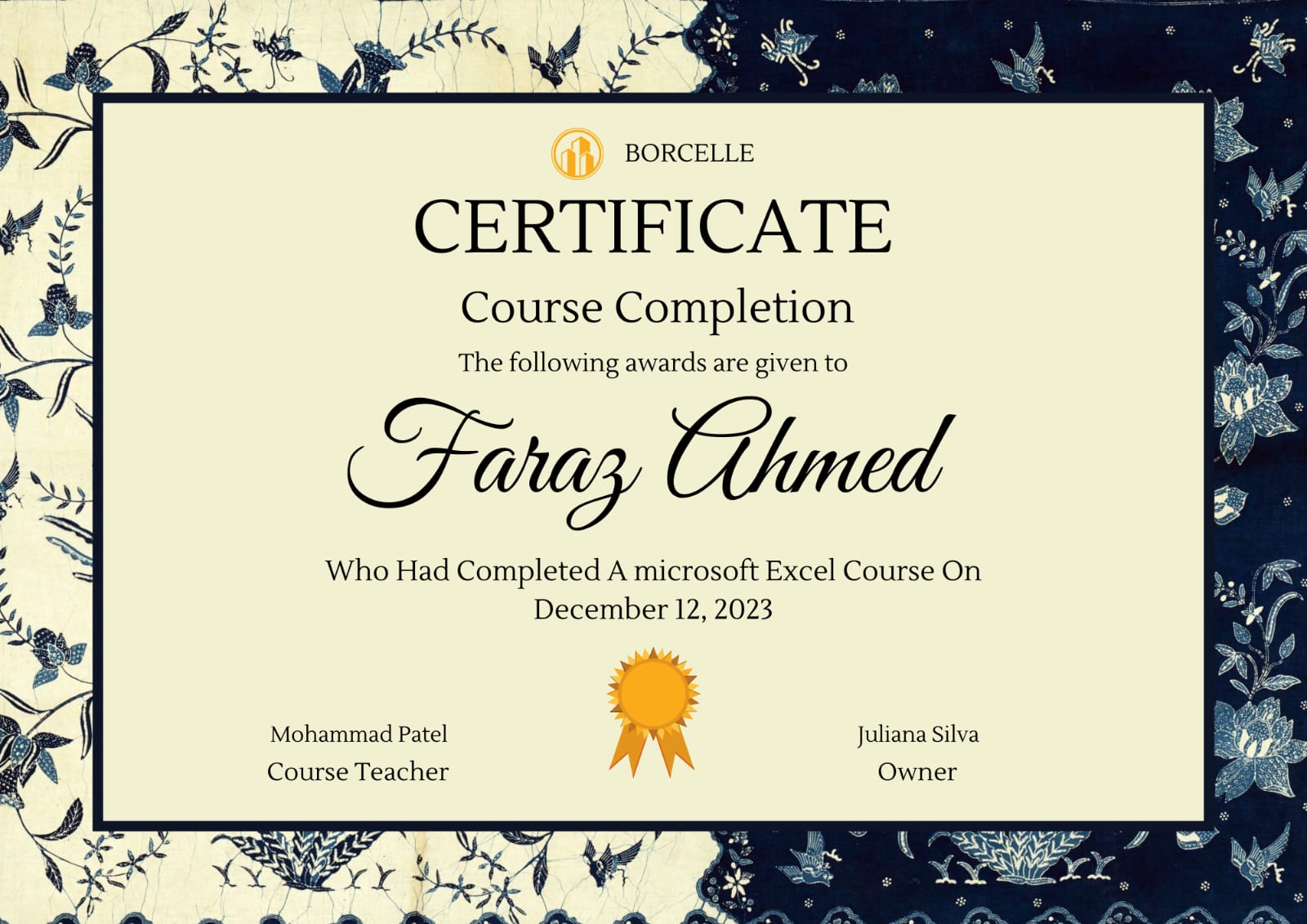 I completed an MS Excel course, where I developed basic skills in spreadsheet management, data entry, and using formulas for calculations. The course also covered essential functions like sorting, filtering, and creating charts, enhancing my ability to organize and analyze data effectively.